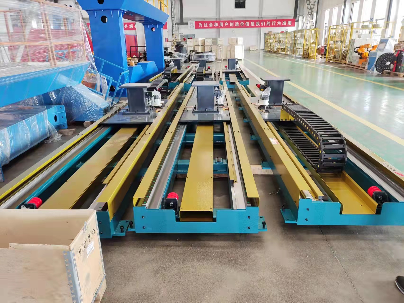 行走軌道可以配合國產(chǎn)機(jī)器人,也可以配進(jìn)口機(jī)器人使用。如果咱們想要軌道跟機(jī)器人做直接聯(lián)動,也就是機(jī)器人在行走軌道上面邊走邊工作,那行走軌道里面裝的電機(jī),是需要跟機(jī)器人同品牌同型號的,所以一般這個第七軸電機(jī)是需要跟機(jī)器人配套的,可以在購買機(jī)器人的時候跟機(jī)器人廠家來配。